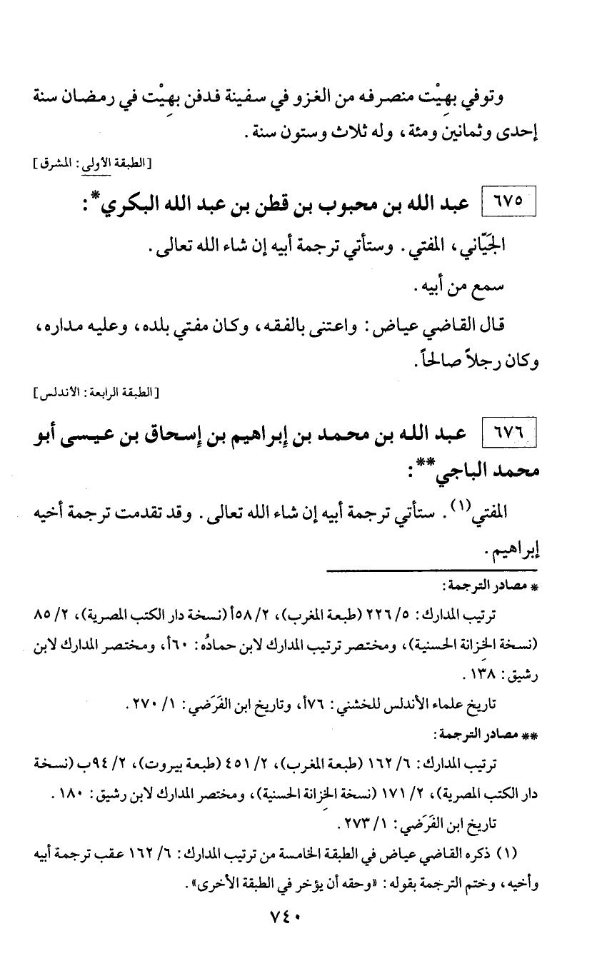 ** مصادر الترجمة: ترتيب المدارك: 6/ 162 (طبعة المغرب)، 2/ 451 (طبعة بيروت)، 2/ 94 ب (نسخة دار الكتب المصرية)، 2/ 171 (نسخة الخزانة الحسنية)، ومختصر المدارك لابن رشيق: 180. تاريخ ابن الفرضي: 1/ 273.