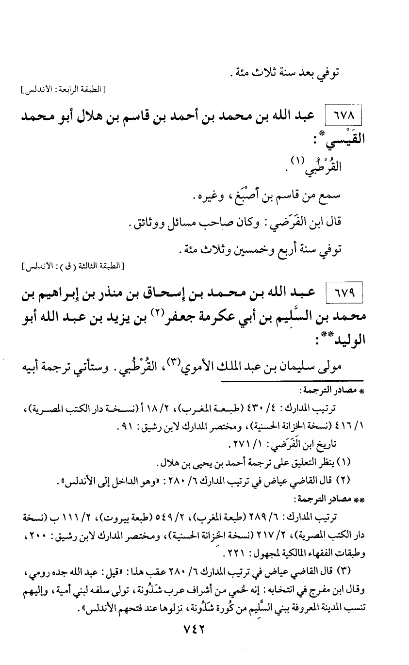 (¬3) قال القاضي عياض في ترتيب المدارك 6/ 280 عقب هذا: «قيل: عبد الله جده رومي، وقال ابن مفرج في انتخابه: إنه لخمي من أشراف عرب شذونة، تولى سلفه لبني أمية، وإليهم تنسب المدينة المعروفة ببني السّليم من كورة شذونة، نزلوها عند فتحهم الأندلس».