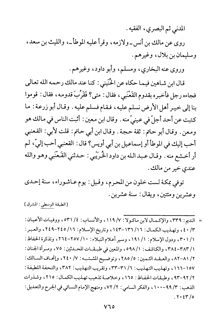 = النديم: 339، والإكمال لابن ماكولا: 7/ 119، والأنساب: 4/ 531، ووفيات الأعيان: 3/ 40، وتهذيب الكمال: 16/ 136 - 143، وتاريخ الإسلام: 16/ 245 - 249، والعبر: 1/ 301، ودول الإسلام: 1/ 191، وسير أعلام النبلاء: 10/ 257 - 264، وتذكرة الحفاظ: 1/ 383 - 384، والكاشف: 1/ 598، والمعين في طبقات المحدثين: 75، ومرآة الجنان: 2/ 81 - 82، والعقد الثمين: 5/ 285، وتوضيح المشتبه: 7/ 240، وإتحاف السالك: 157 - 166، وتهذيب التهذيب: 6/ 31 - 33، وتقريب التهذيب: 382، والتحفة اللطيفة: 2/ 92 - 93، وطبقات الحفاظ: 165، وخلاصة تذهيب تهذيب الكمال: 215، وشذرات الذهب: 3/ 99 - 100، والفكر السامي: 2/ 72، ومنهج الإمام النسائي في الجرح والتعديل: 5/ 2043.