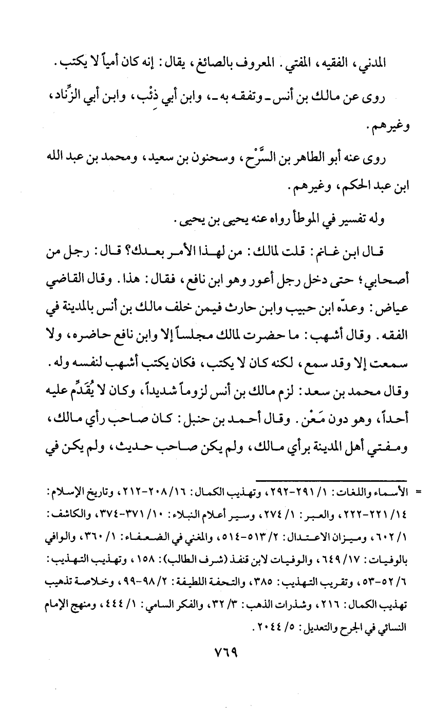 وقال محمد بن سعد: لزم مالك بن أنس لزوما شديدا، وكان لا يقدّم عليه أحدا، وهو دون معن. وقال أحمد بن حنبل: كان صاحب رأي مالك، ومفتي أهل المدينة برأي مالك، ولم يكن صاحب حديث، ولم يكن في