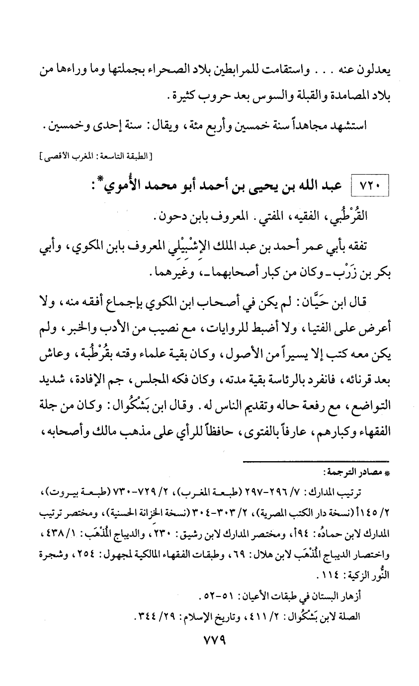 * مصادر الترجمة: ترتيب المدارك: 7/ 296 - 297 (طبعة المغرب)، 2/ 729 - 730 (طبعة بيروت)، 2/ 145 أ (نسخة دار الكتب المصرية)، 2/ 303 - 304 (نسخة الخزانة الحسنية)، ومختصر ترتيب المدارك لابن حماده: 94 أ، ومختصر المدارك لابن رشيق: 230، والديباج المذهب: 1/ 438، واختصار الديباج المذهب لابن هلال: 69، وطبقات الفقهاء المالكية لمجهول: 254، وشجرة النّور الزكية: 114. أزهار البستان في طبقات الأعيان: 51 - 52. الصلة لابن بشكوال: 2/ 411، وتاريخ الإسلام: 29/ 344.