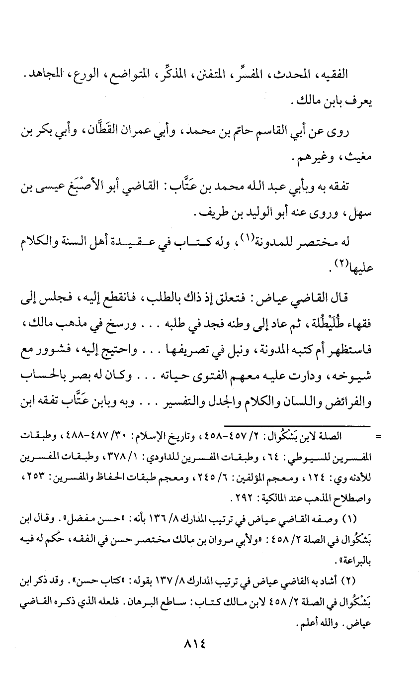 (¬2) أشاد به القاضي عياض في ترتيب المدارك 8/ 137 بقوله: «كتاب حسن». وقد ذكر ابن بشكوال في الصلة 2/ 458 لابن مالك كتاب: ساطع البرهان. فلعله الذي ذكره القاضي عياض. والله أعلم.