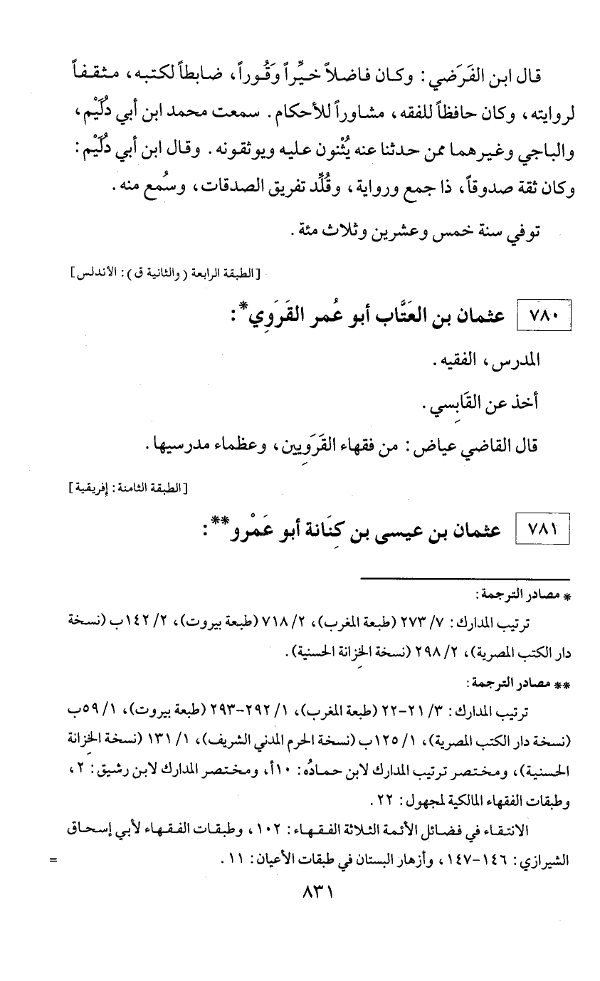 ** مصادر الترجمة: ترتيب المدارك: 3/ 21 - 22 (طبعة المغرب)، 1/ 292 - 293 (طبعة بيروت)، 1/ 59 ب (نسخة دار الكتب المصرية)، 1/ 125 ب (نسخة الحرم المدني الشريف)، 1/ 131 (نسخة الخزانة الحسنية)، ومختصر ترتيب المدارك لابن حماده: 10 أ، ومختصر المدارك لابن رشيق: 2، وطبقات الفقهاء المالكية لمجهول: 22. الانتقاء في فضائل الأئمة الثلاثة الفقهاء: 102، وطبقات الفقهاء لأبي إسحاق الشيرازي: 146 - 147، وأزهار البستان في طبقات الأعيان: 11. =