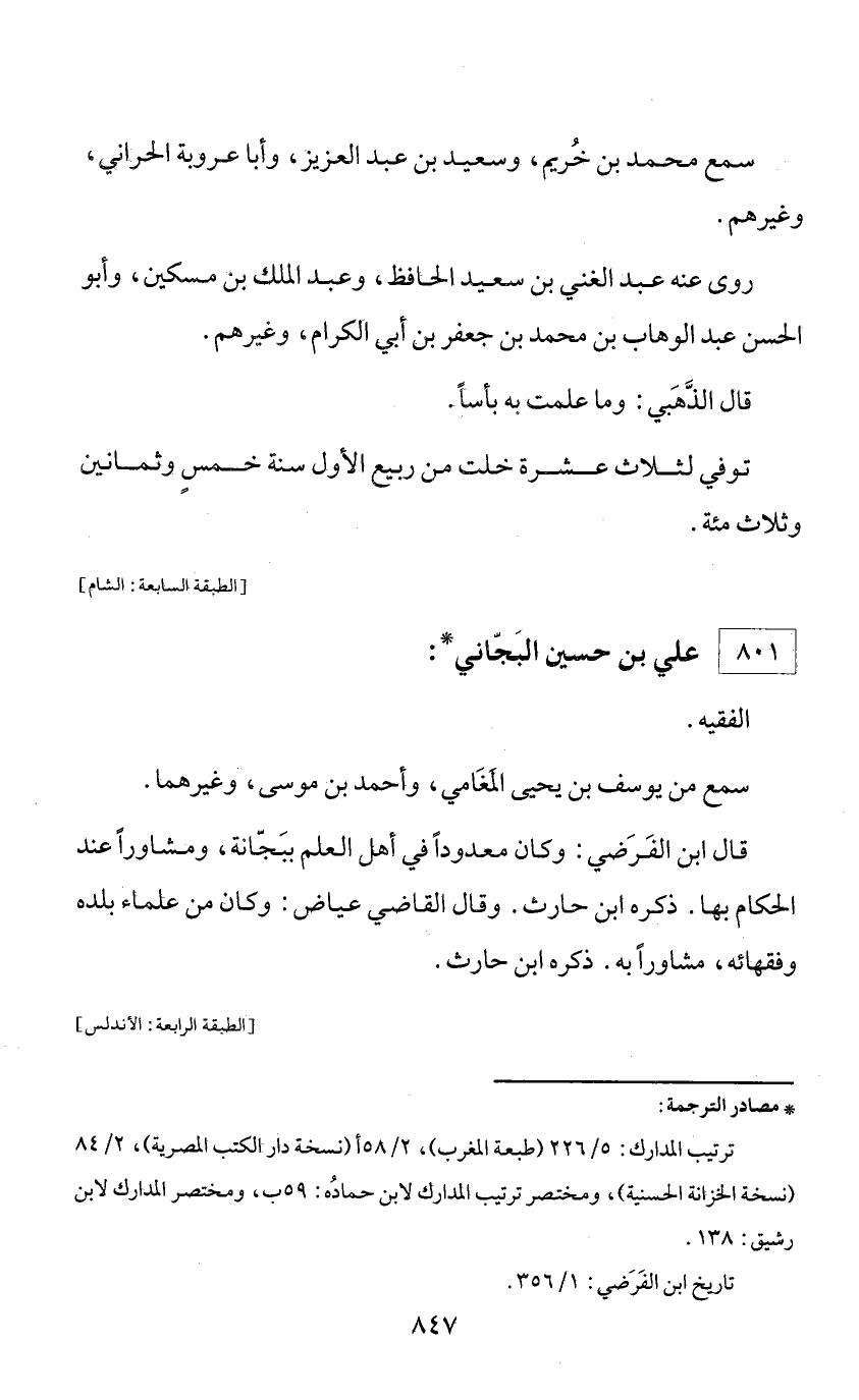 * مصادر الترجمة: ترتيب المدارك: 5/ 226 (طبعة المغرب)، 2/ 58 أ (نسخة دار الكتب المصرية)، 2/ 84 (نسخة الخزانة الحسنية)، ومختصر ترتيب المدارك لابن حماده: 59 ب، ومختصر المدارك لابن رشيق: 138. تاريخ ابن الفرضي: 1/ 356.