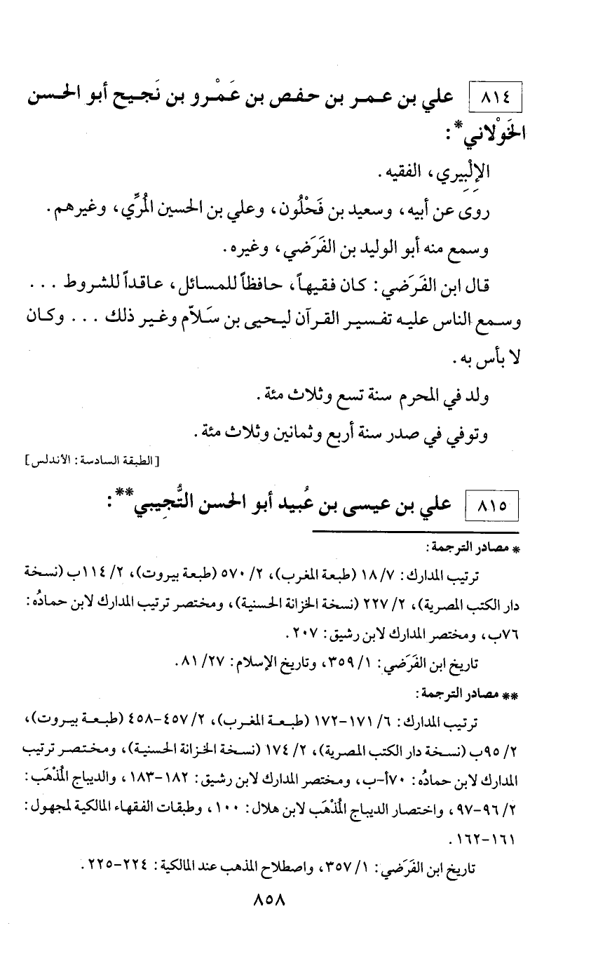 * مصادر الترجمة: ترتيب المدارك: 7/ 18 (طبعة المغرب)، 2/ 570 (طبعة بيروت)، 2/ 114 ب (نسخة دار الكتب المصرية)، 2/ 227 (نسخة الخزانة الحسنية)، ومختصر ترتيب المدارك لابن حماده: 76 ب، ومختصر المدارك لابن رشيق: 207. تاريخ ابن الفرضي: 1/ 359، وتاريخ الإسلام: 27/ 81.