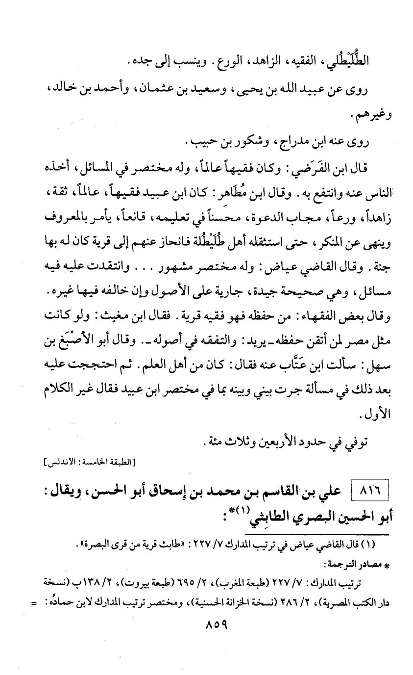 * مصادر الترجمة: ترتيب المدارك: 7/ 227 (طبعة المغرب)، 2/ 695 (طبعة بيروت)، 2/ 138 ب (نسخة دار الكتب المصرية)، 2/ 286 (نسخة الخزانة الحسنية)، ومختصر ترتيب المدارك لابن حماده: =