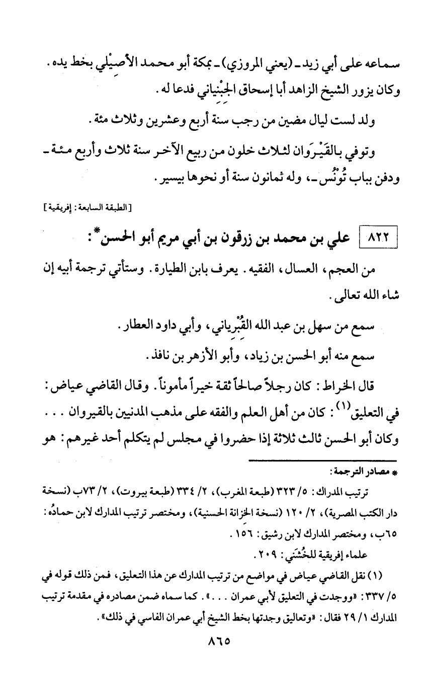 * مصادر الترجمة: ترتيب المدارك: 5/ 323 (طبعة المغرب)، 2/ 334 (طبعة بيروت)، 2/ 73 ب (نسخة دار الكتب المصرية)، 2/ 120 (نسخة الخزانة الحسنية)، ومختصر ترتيب المدارك لابن حماده: 65 ب، ومختصر المدارك لابن رشيق: 156. علماء إفريقية للخشني: 209.