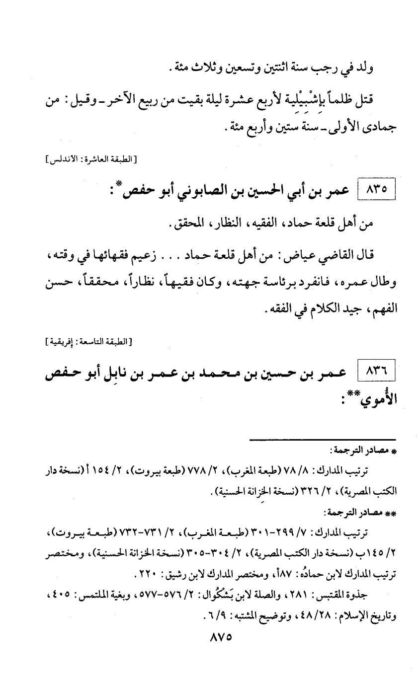 ** مصادر الترجمة: ترتيب المدارك: 7/ 299 - 301 (طبعة المغرب)، 2/ 731 - 732 (طبعة بيروت)، 2/ 145 ب (نسخة دار الكتب المصرية)، 2/ 304 - 305 (نسخة الخزانة الحسنية)، ومختصر ترتيب المدارك لابن حماده: 87 أ، ومختصر المدارك لابن رشيق: 220. جذوة المقتبس: 281، والصلة لابن بشكوال: 2/ 576 - 577، وبغية الملتمس: 405، وتاريخ الإسلام: 28/ 48، وتوضيح المشتبه: 9/ 6.