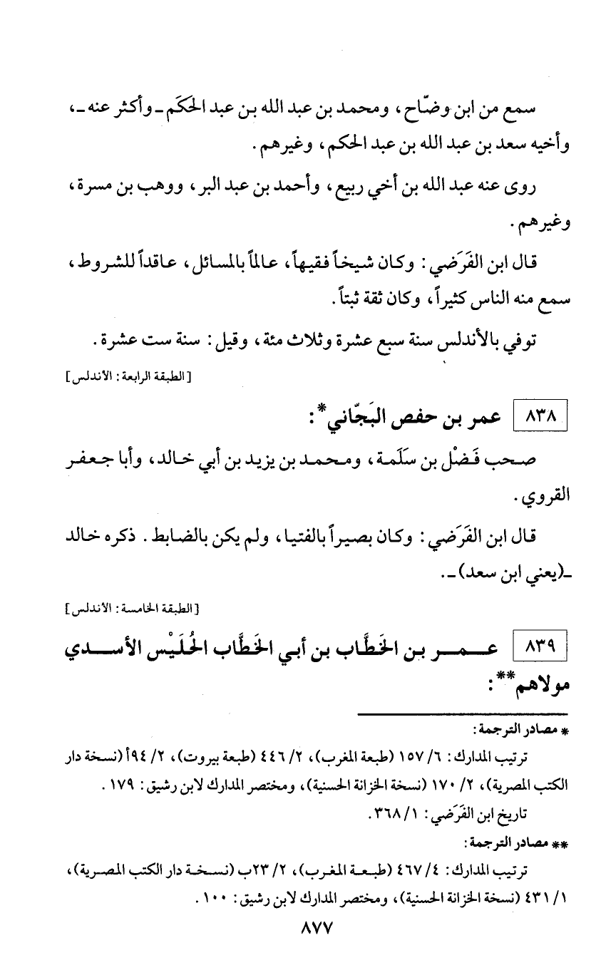 * مصادر الترجمة: ترتيب المدارك: 6/ 157 (طبعة المغرب)، 2/ 446 (طبعة بيروت)، 2/ 94 أ (نسخة دار الكتب المصرية)، 2/ 170 (نسخة الخزانة الحسنية)، ومختصر المدارك لابن رشيق: 179. تاريخ ابن الفرضي: 1/ 368.