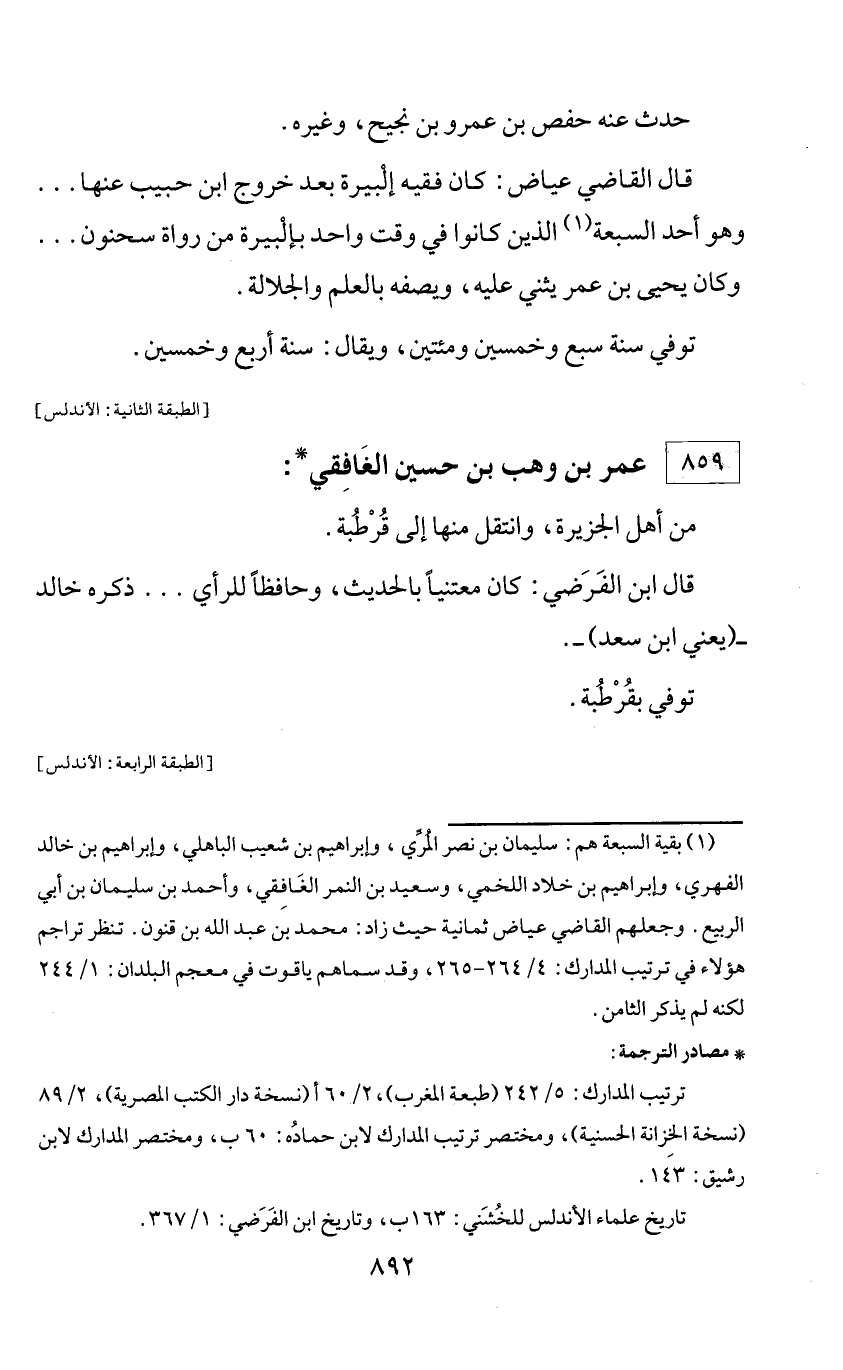 * مصادر الترجمة: ترتيب المدارك: 5/ 242 (طبعة المغرب)، 2/ 60 أ (نسخة دار الكتب المصرية)، 2/ 89 (نسخة الخزانة الحسنية)، ومختصر ترتيب المدارك لابن حماده: 60 ب، ومختصر المدارك لابن رشيق: 143. تاريخ علماء الأندلس للخشني: 163 ب، وتاريخ ابن الفرضي: 1/ 367.