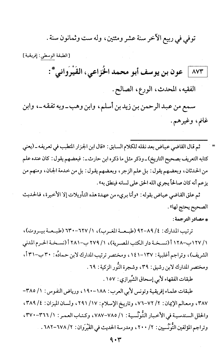 873 - عون بن يوسف أبو محمد الخزاعي، القيرواني *: