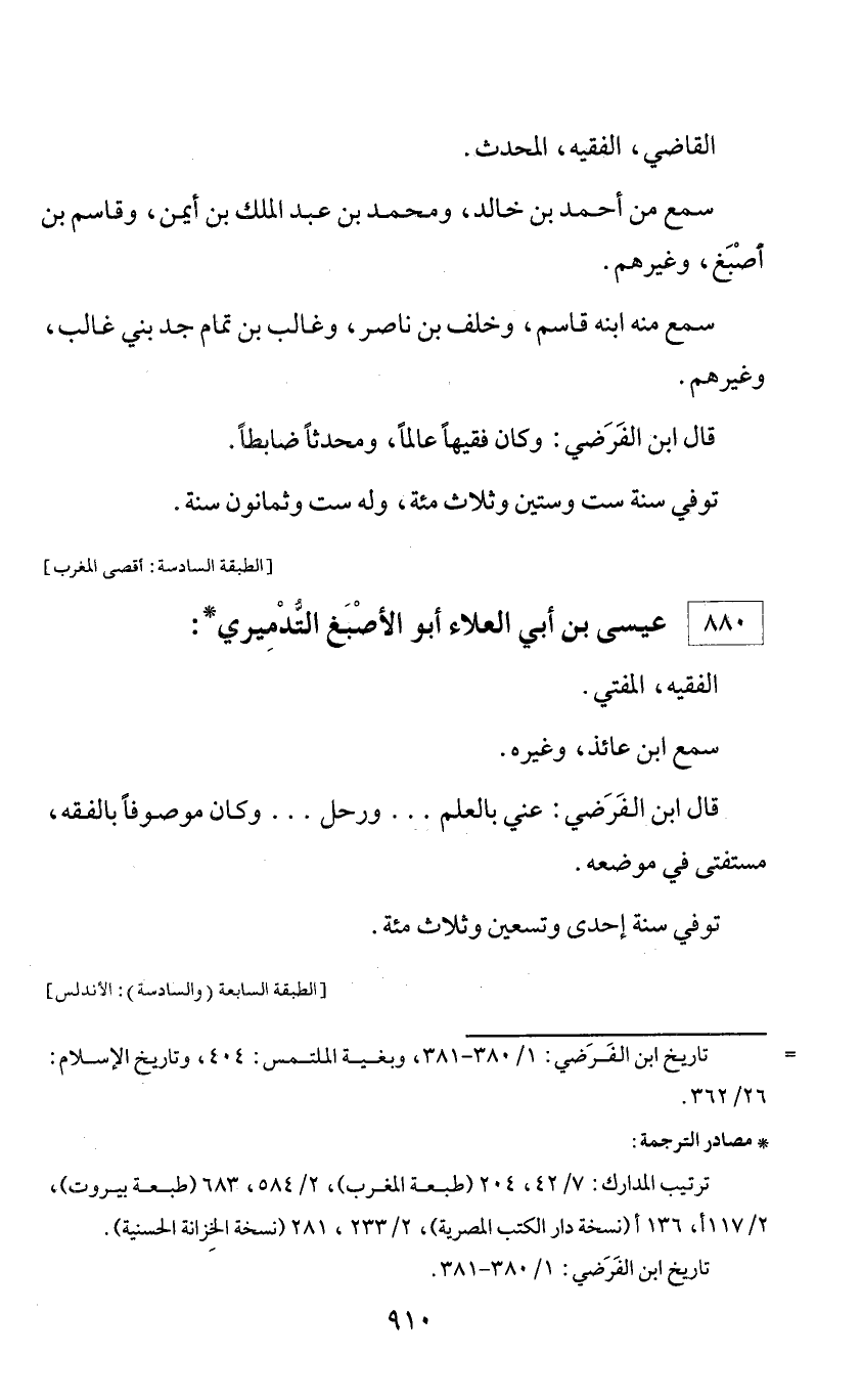 * مصادر الترجمة: ترتيب المدارك: 7/ 42، 204 (طبعة المغرب)، 2/ 584، 683 (طبعة بيروت)، 2/ 117 أ، 136 أ (نسخة دار الكتب المصرية)، 2/ 233، 281 (نسخة الخزانة الحسنية). تاريخ ابن الفرضي: 1/ 380 - 381.