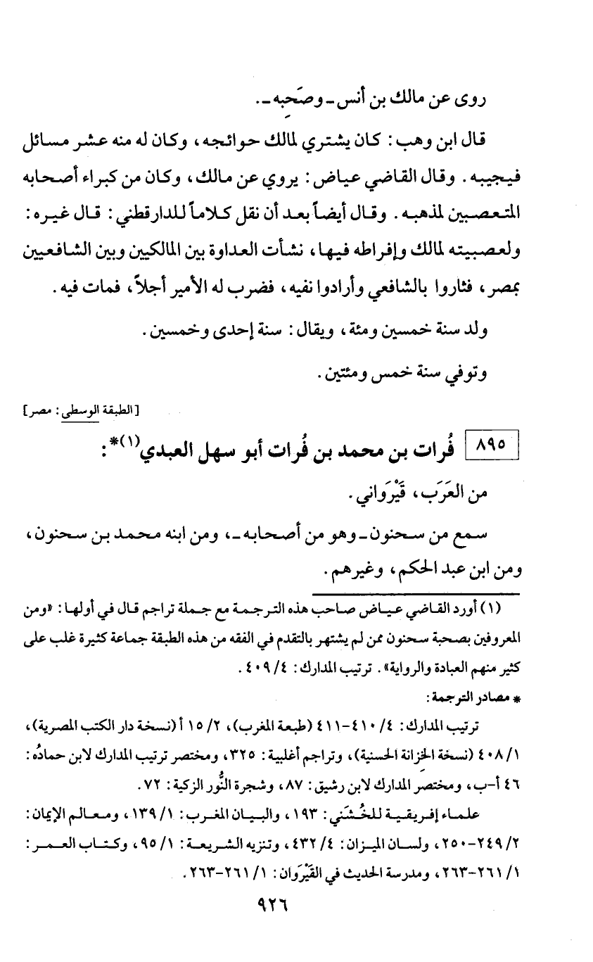 (¬1) أورد القاضي عياض صاحب هذه الترجمة مع جملة تراجم قال في أولها: «ومن المعروفين بصحبة سحنون ممن لم يشتهر بالتقدم في الفقه من هذه الطبقة جماعة كثيرة غلب على كثير منهم العبادة والرواية». ترتيب المدارك: 4/ 409.