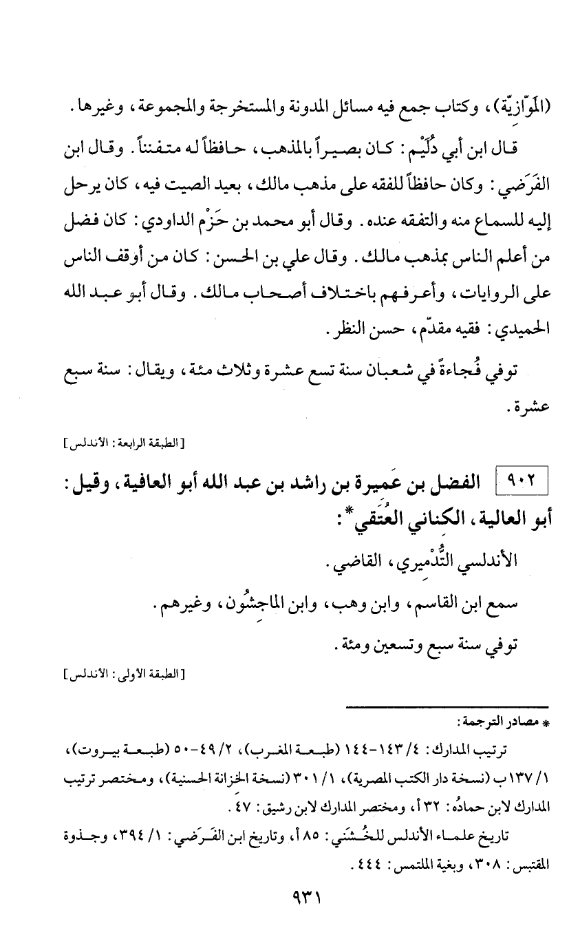 * مصادر الترجمة: ترتيب المدارك: 4/ 143 - 144 (طبعة المغرب)، 2/ 49 - 50 (طبعة بيروت)، 1/ 137 ب (نسخة دار الكتب المصرية)، 1/ 301 (نسخة الخزانة الحسنية)، ومختصر ترتيب المدارك لابن حماده: 32 أ، ومختصر المدارك لابن رشيق: 47. تاريخ علماء الأندلس للخشني: 85 أ، وتاريخ ابن الفرضي: 1/ 394، وجذوة المقتبس: 308، وبغية الملتمس: 444.