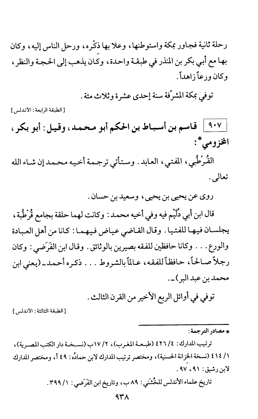 * مصادر الترجمة: ترتيب المدارك: 4/ 426 (طبعة المغرب)، 2/ 17 ب (نسخة دار الكتب المصرية)، 1/ 414 (نسخة الخزانة الحسنية)، ومختصر ترتيب المدارك لابن حماده: 49 أ، ومختصر المدارك لابن رشيق: 91، 97. تاريخ علماء الأندلس للخشني: 89 ب، وتاريخ ابن الفرضي: 1/ 399.