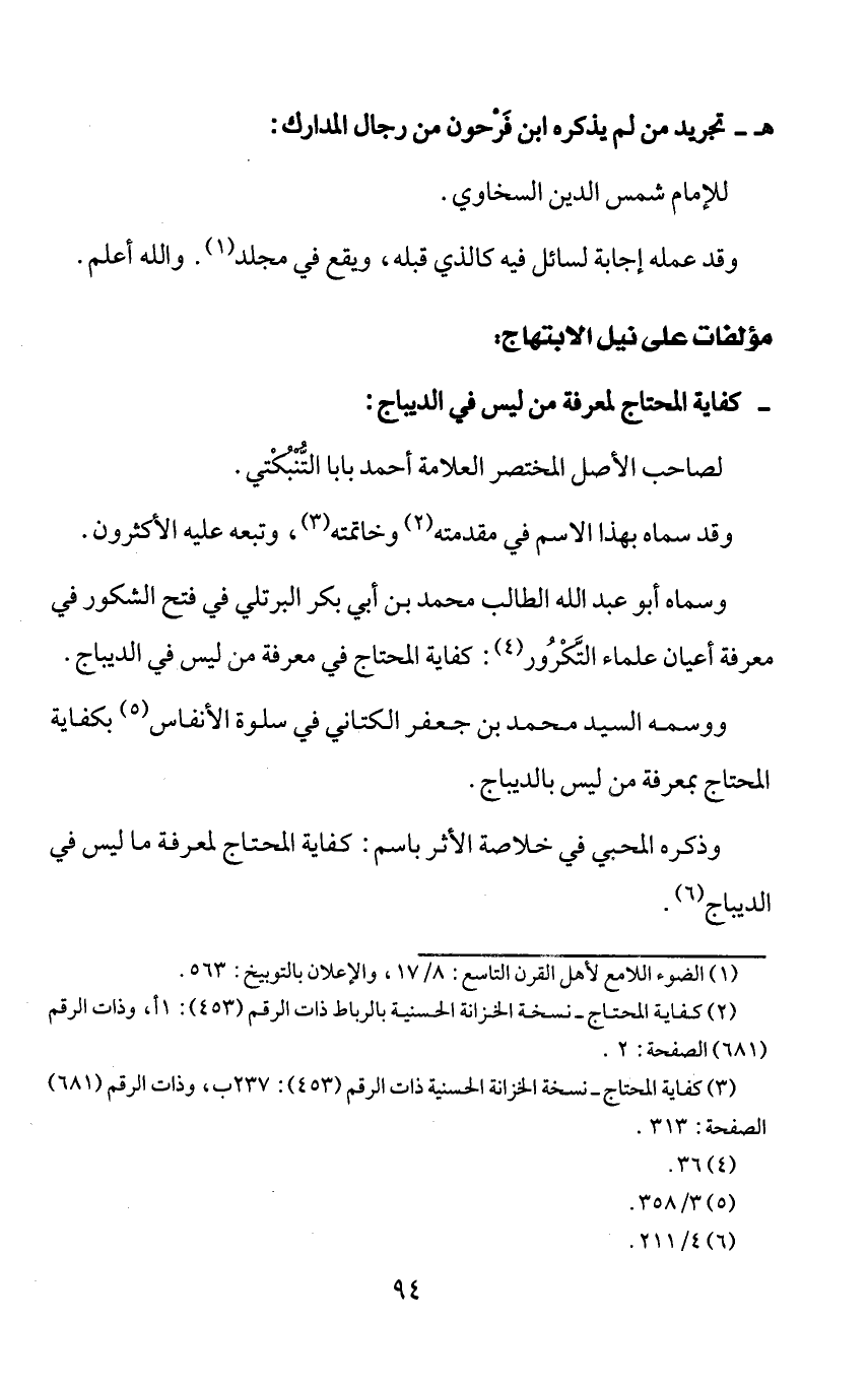 - كفاية المحتاج لمعرفة من ليس في الديباج: لصاحب الأصل المختصر العلامة أحمد بابا التّنبكتي.