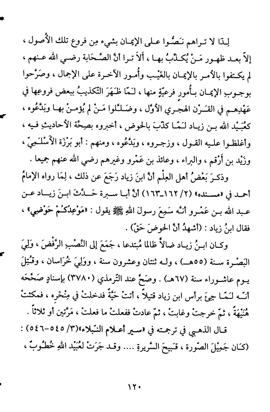 وذكر بعض أهل العلم أن ابن زياد رجع عن ذلك، لما رواه الإمام أحمد في "مسنده" (2 / 162 - 163) أن أبا سبرة حدث ابن زياد عن عبد الله بن عمرو أنه سمع رسول الله صلى الله عليه وسلم يقول: «موعدكم حوضي» ، فقال ابن زياد: (أشهد أن الحوض حق) .