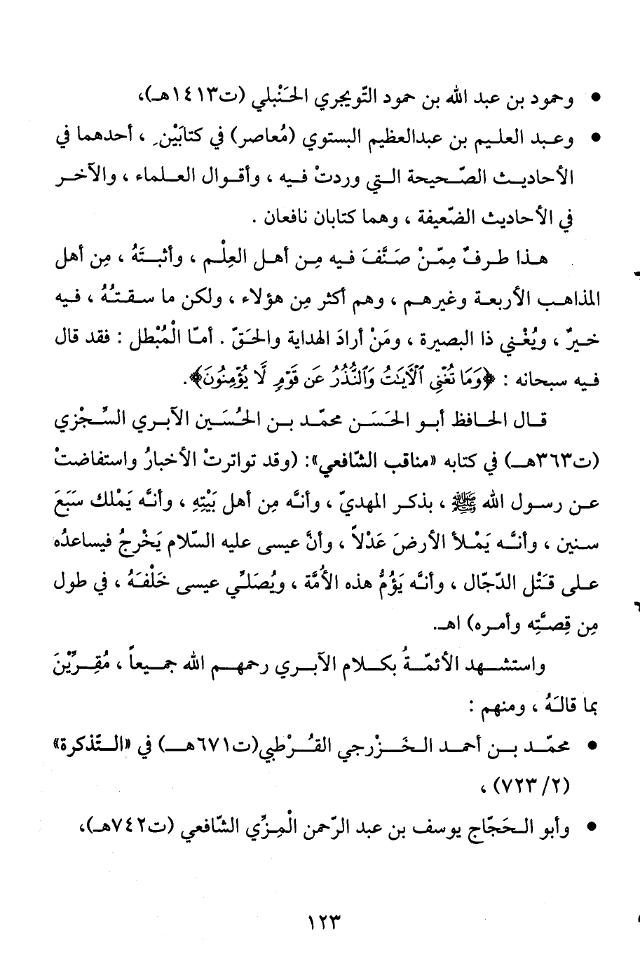 هذا طرف ممن صنف فيه من أهل العلم، وأثبته، من أهل المذاهب الأربعة وغيرهم، وهم أكثر من هؤلاء، ولكن ما سقته، فيه خير، ويغني ذا البصيرة، ومن أراد الهداية والحق. أما المبطل: فقد قال فيه سبحانه: {وَمَا تُغْنِي الْآيَاتُ وَالنُّذُرُ عَنْ قَوْمٍ لَا يُؤْمِنُونَ} [يونس: 101] .