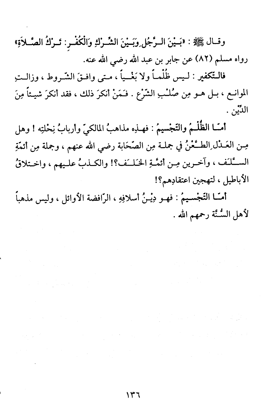 أما الظلم والتجسيم: فهذه مذاهب المالكي وأرباب نحلته! وهل من العدل الطعن في جملة من الصحابة رضي الله عنهم، وجملة من أئمة السلف، وآخرين من أئمة الخلف؟ ! والكذب عليهم، واختلاق الأباطيل، لتهجين اعتقادهم؟ !