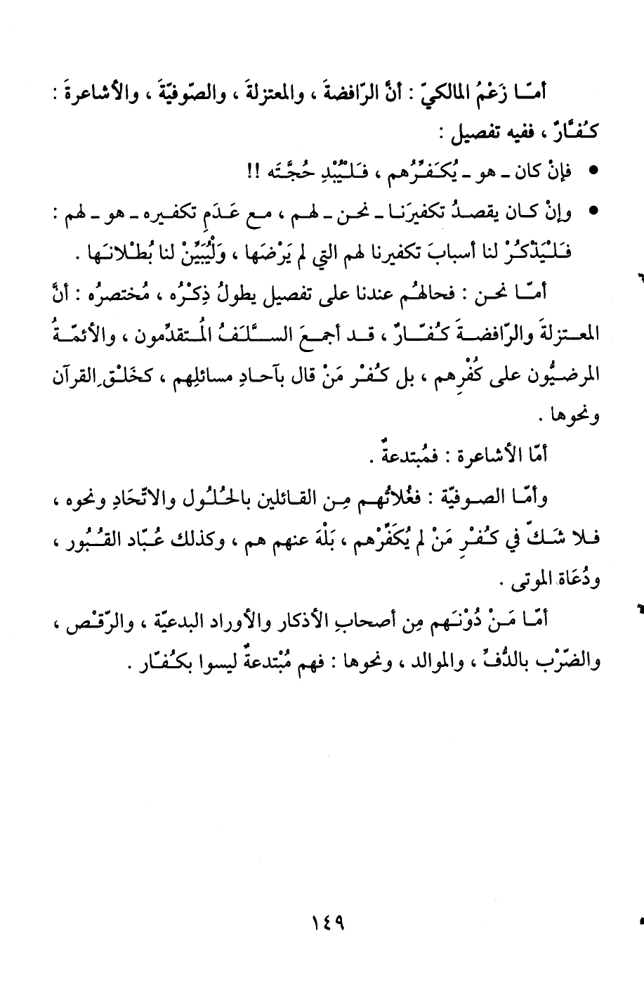 أما زعم المالكي: أن الرافضة والمعتزلة والصوفية والأشاعرة كفار، ففيه تفصيل:. فإن كان - هو - يكفرهم، فليبد حجته! !