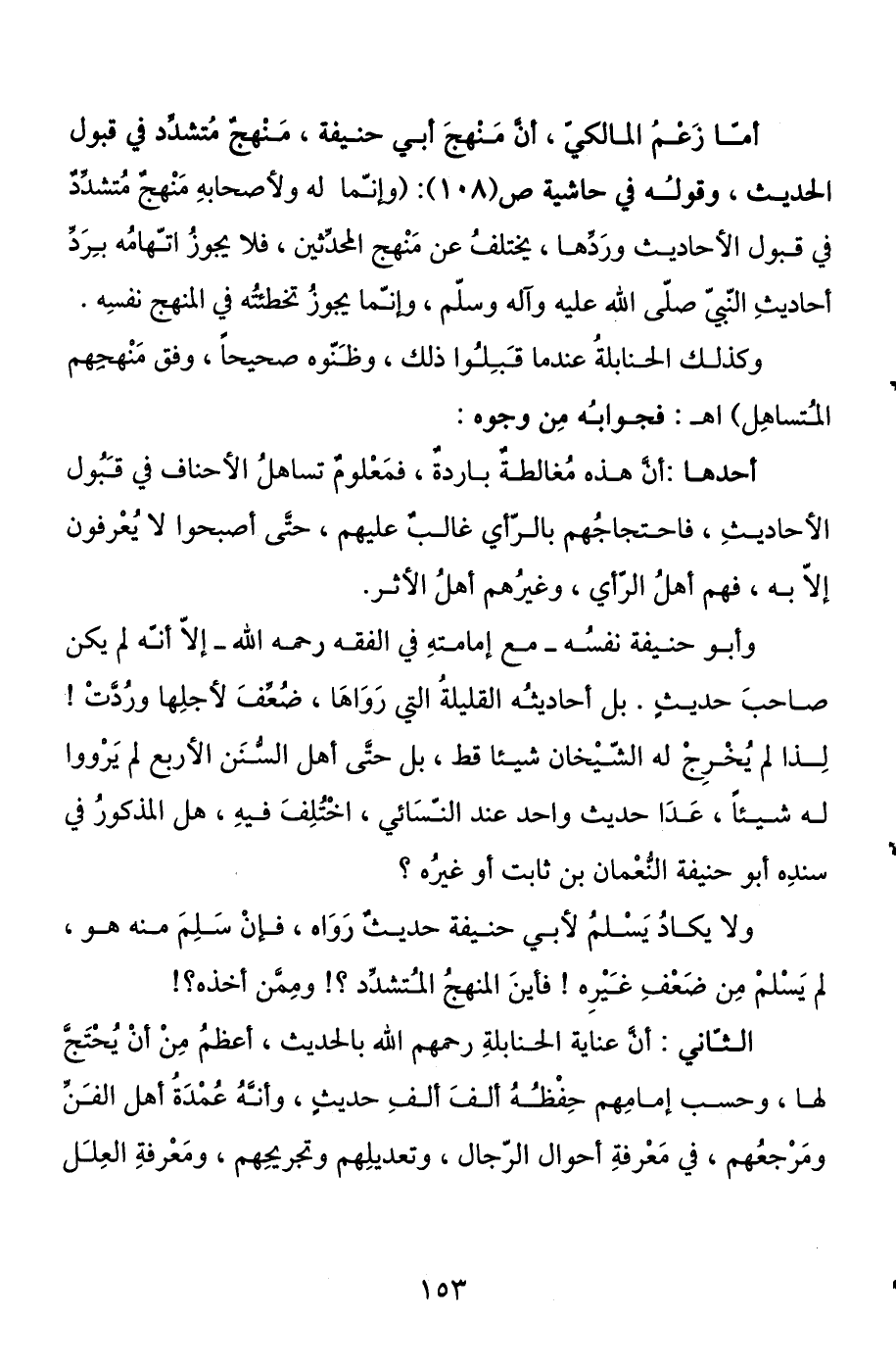 أما زعم المالكي، أن منهج أبي حنيفة، منهج متشدد في قبول الحديث، وقوله في حاشية ص (108) : (وإنما له ولأصحابه منهج متشدد في قبول الأحاديث وردها، يختلف عن منهج المحدثين، فلا يجوز اتهامه برد أحاديث النبي صلى الله عليه وآله وسلم، وإنما يجوز تخطئته في المنهج نفسه.