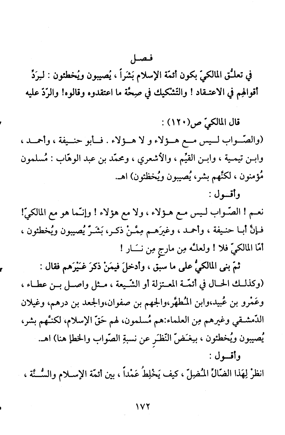 في تعلق المالكي بكون أئمة الإسلام بشرا، يصيبون ويخطئون: لرد