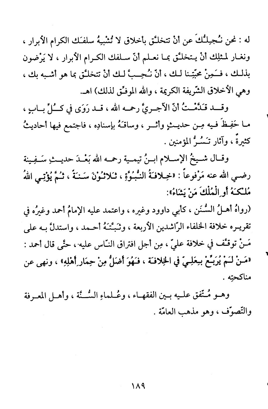 وقد قدمت أن الآجري رحمه الله، قد روى في كل باب، ما حفظ فيه من حديث وأثر، وساقه بإسناده، فاجتمع فيها أحاديث كثيرة، وآثار تسر المؤمنين.
