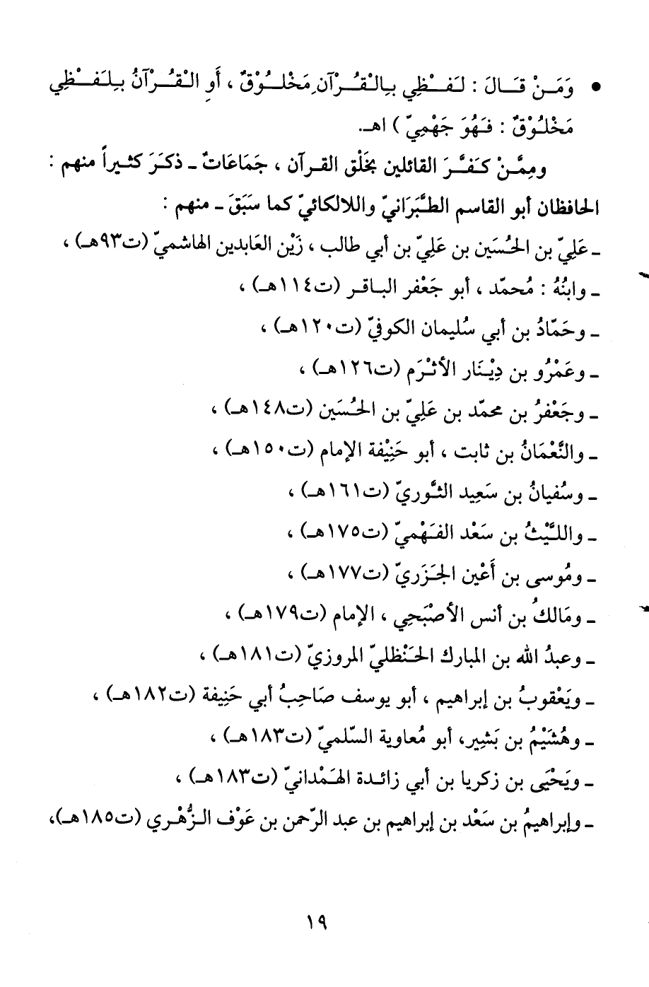 وممن كفر القائلين بخلق القرآن، جماعات - ذكر كثيرا منهم: