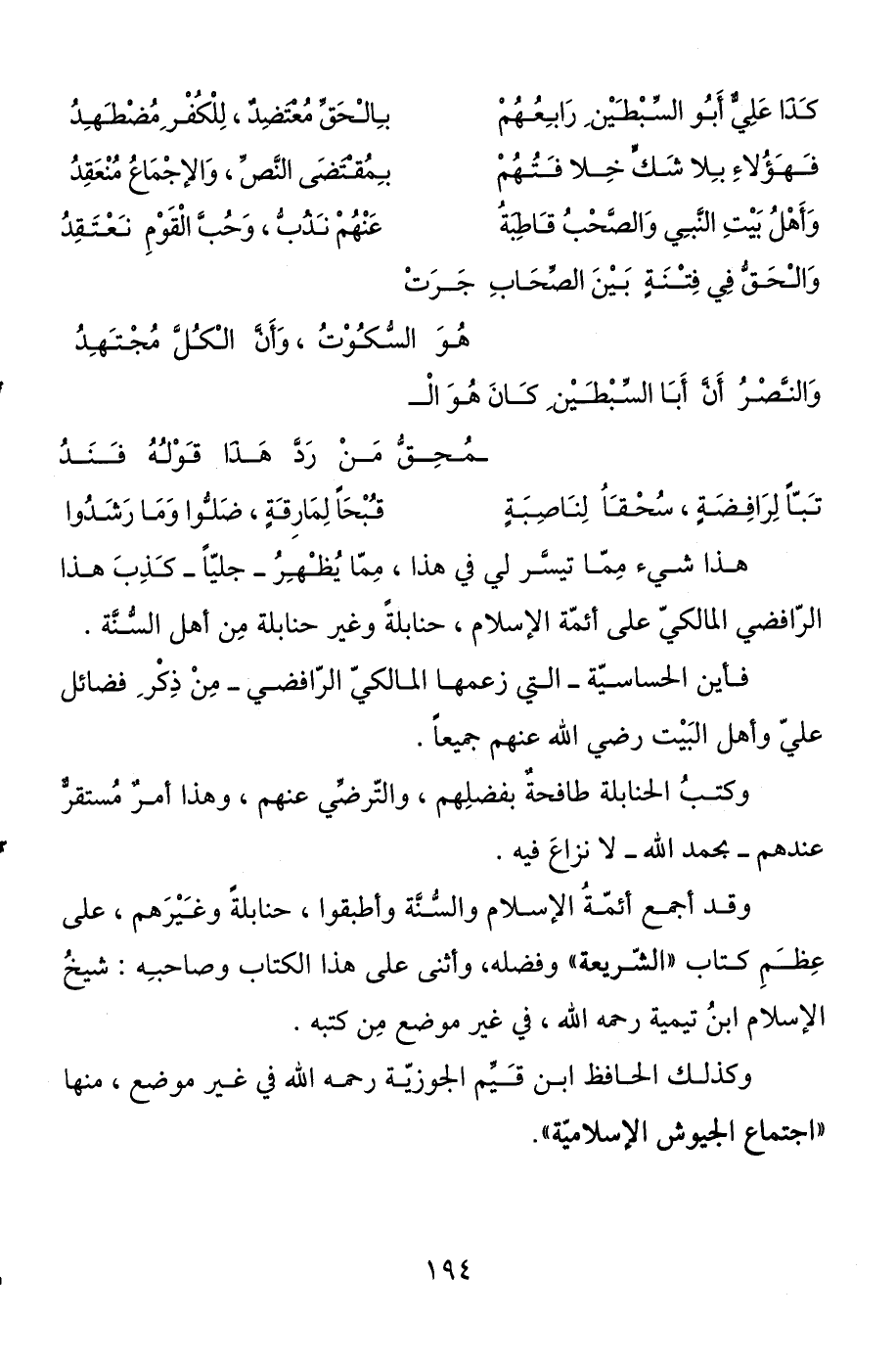 وأهل بيت النبي والصحب قاطبة ... عنهم ندب , وحب القوم نعتقد