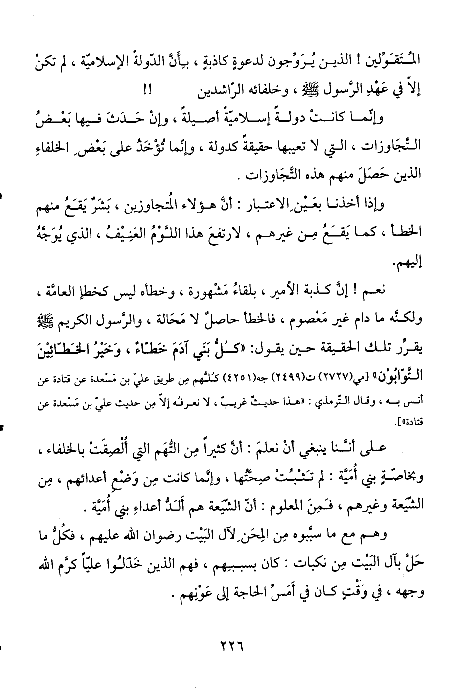 وإنما كانت دولة إسلامية أصيلة، وإن حدث فيها بعض التجاوزات، التي لا تعيبها حقيقة كدولة، وإنما تؤخذ على بعض الخلفاء الذين حصل منهم هذه التجاوزات.