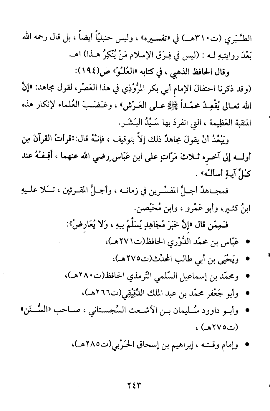 الطبري (ت 315 هـ) في "تفسيره "، وليس حنبليا أيضا، بل قال رحمه الله بعد روايته له: (ليس في فرق الإسلام من ينكر هذا) اهـ.