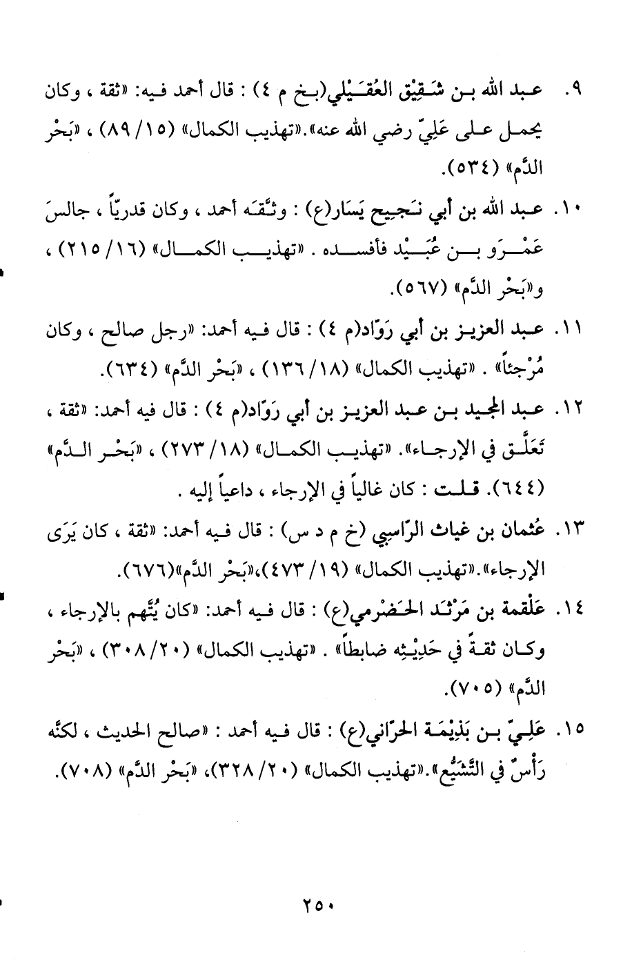 9 -. عبد الله بن شقيق العقيلي (بخ م 4) : قال أحمد فيه: " ثقة، وكان يحمل على علي رضي الله عنه لما. " تهذيب الكمال" (15 / 89) ، "بحر الدم " (534) .