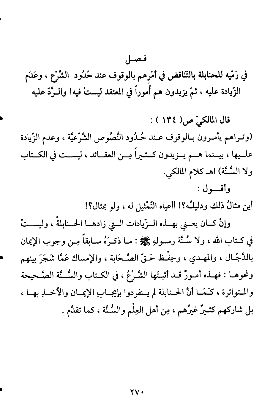 ثم يزيدون هم أمورا في المعتقد ليست فيه، والرد عليه قال المالكي ص (134) : (وتراهم يأمرون بالوقوف عند حدود النصوص الشرعية، وعدم الزيادة عليها، بينما هم يزيدون كثيرا من العقائد، ليست في الكتاب ولا السنة) اهـ كلام المالكي.