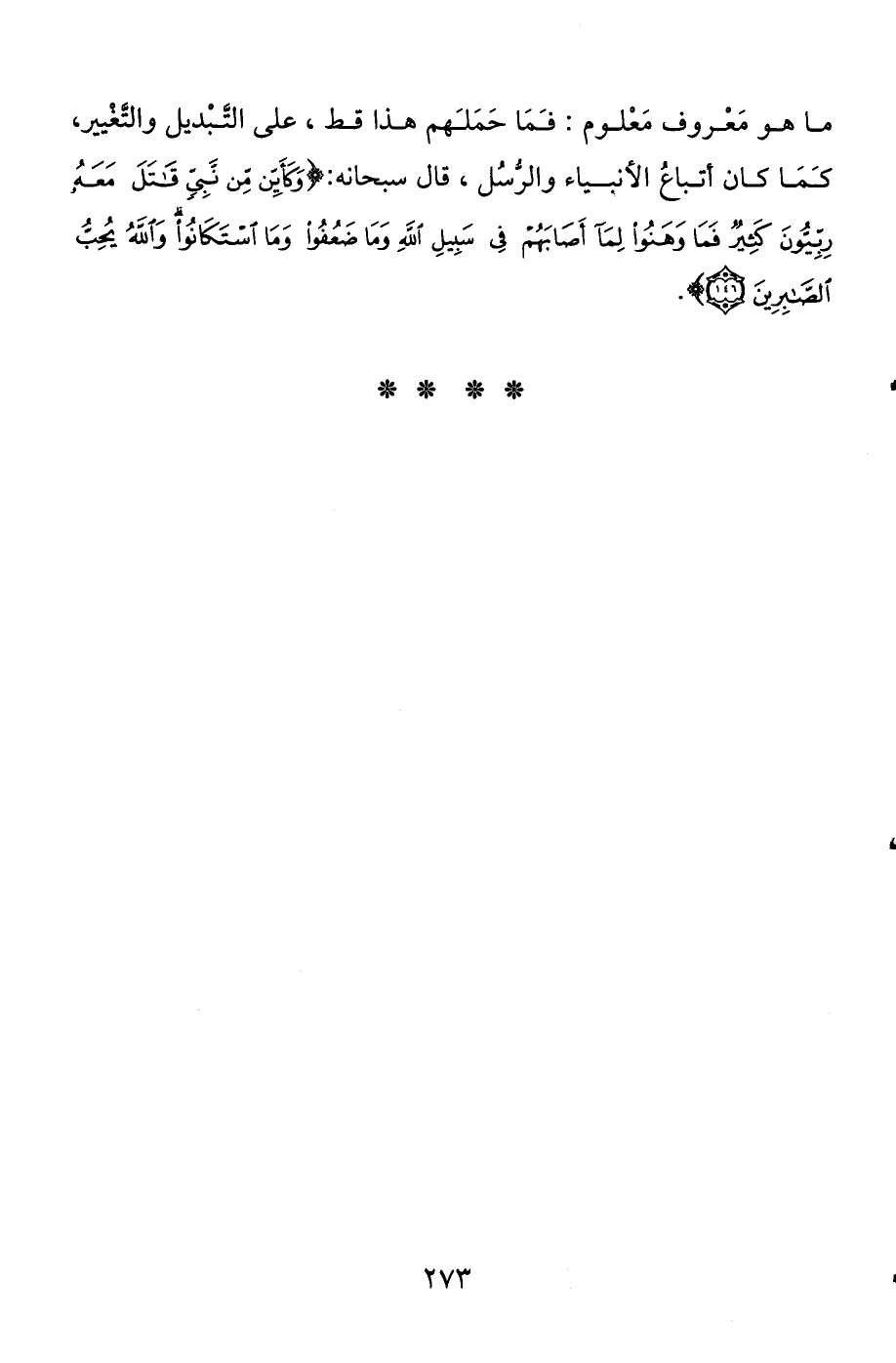 ما هو معروف معلوم، فما حملهم هذا قط، على التبديل والتغيير، كما كان أتباع الأنبياء والرسل، قال سبحانه: {وَكَأَيِّنْ مِنْ نَبِيٍّ قَاتَلَ مَعَهُ رِبِّيُّونَ كَثِيرٌ فَمَا وَهَنُوا لِمَا أَصَابَهُمْ فِي سَبِيلِ اللَّهِ وَمَا ضَعُفُوا وَمَا اسْتَكَانُوا وَاللَّهُ يُحِبُّ الصَّابِرِينَ} [آل عمران: 146] .