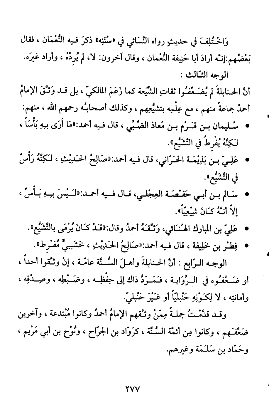 الوجه الثالث: أن الحنابلة لم يضعفوا ثقات الشيعة كما زعم المالكي، بل قد وثق الإمام أحمد جماعة منهم، مع علمه بتشيعهم، وكذلك أصحابه رحمهم الله، منهم: