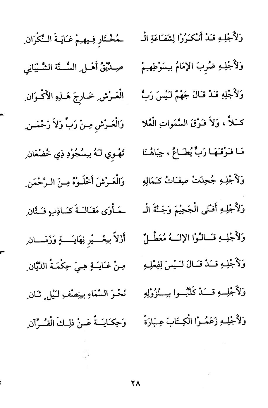 ولأجله جحدت صفات كماله ... والعرش أخلوه من الرحمن
