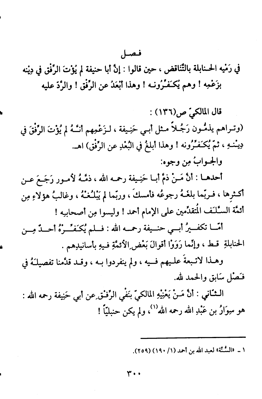 [فصل في رميه الحنابلة بالتناقض حين قالوا إن أبا حنيفة لم يؤت الرفق في دينه بزعمه]