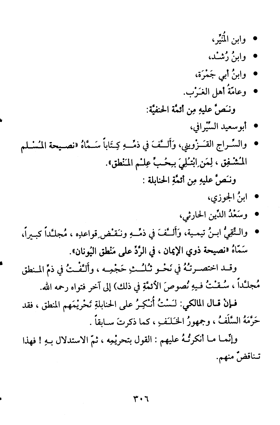 فإن قال المالكي: لست أنكر على الحنابلة تحريمهم المنطق، فقد حرمه السلف، وجمهور الخلف، كما ذكرت سابقا.