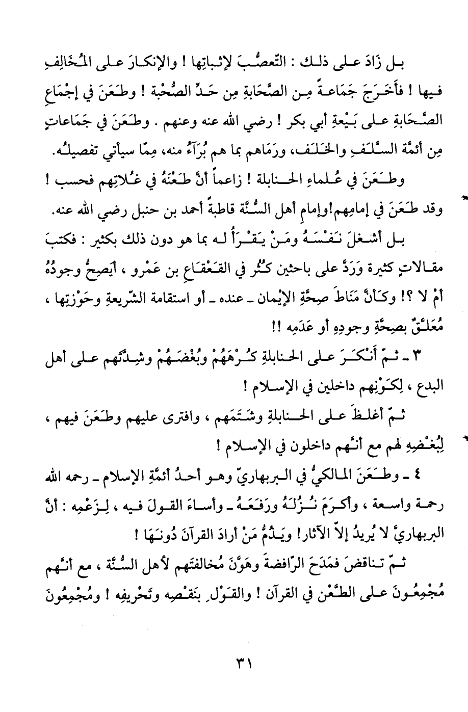 3 - ثم أنكر على الحنابلة كرههم وبغضهم وشدتهم على أهل البدع، لكونهم داخلين في الإسلام!