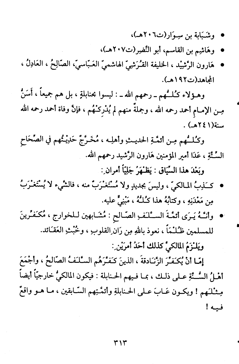 وهؤلاء كلهم- رحمهم الله - ليسوا بحنابلة، بل هم جميعا أسن من الإمام أحمد رحمه الله، وجملة منهم لم يدركهم، فإن وفاة أحمد رحمه الله سنة (241 هـ) .