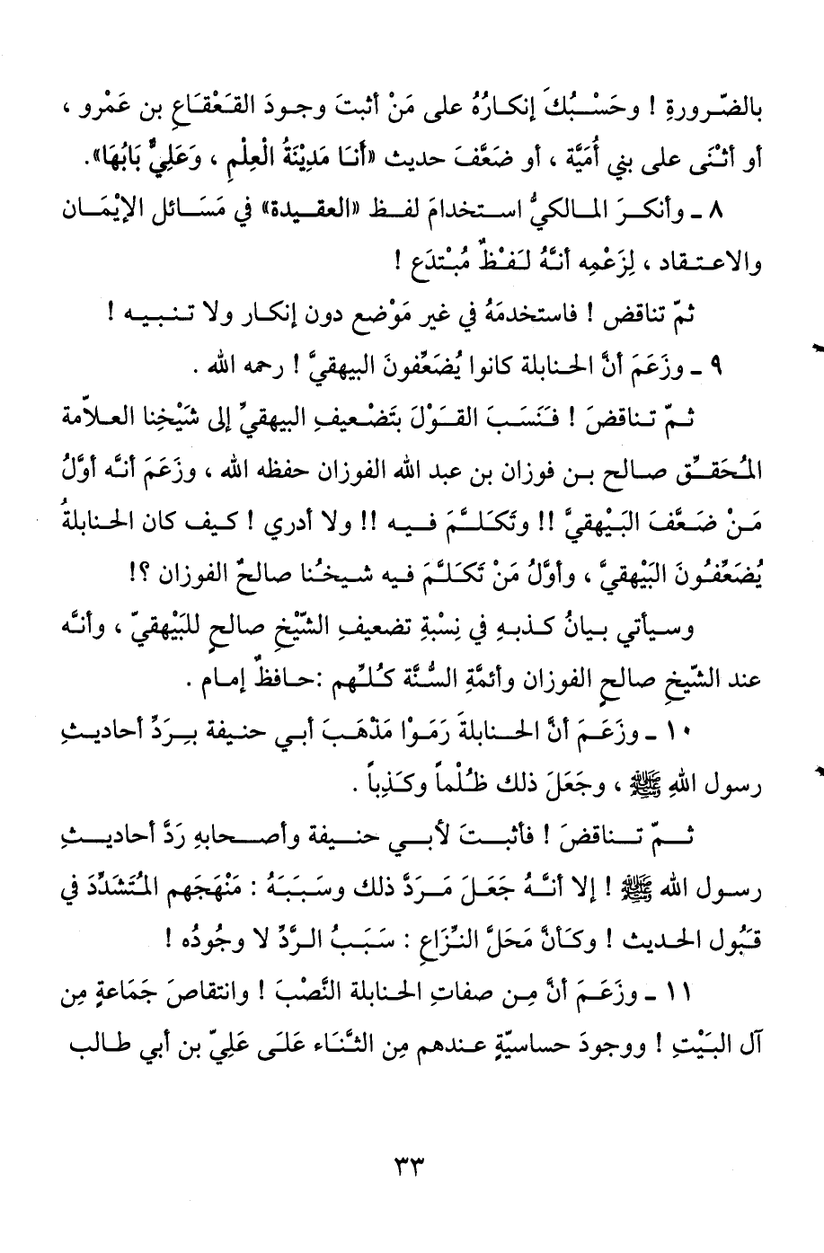 9 - وزعم أن الحنابلة كانوا يضعفون البيهقي! رحمه الله.