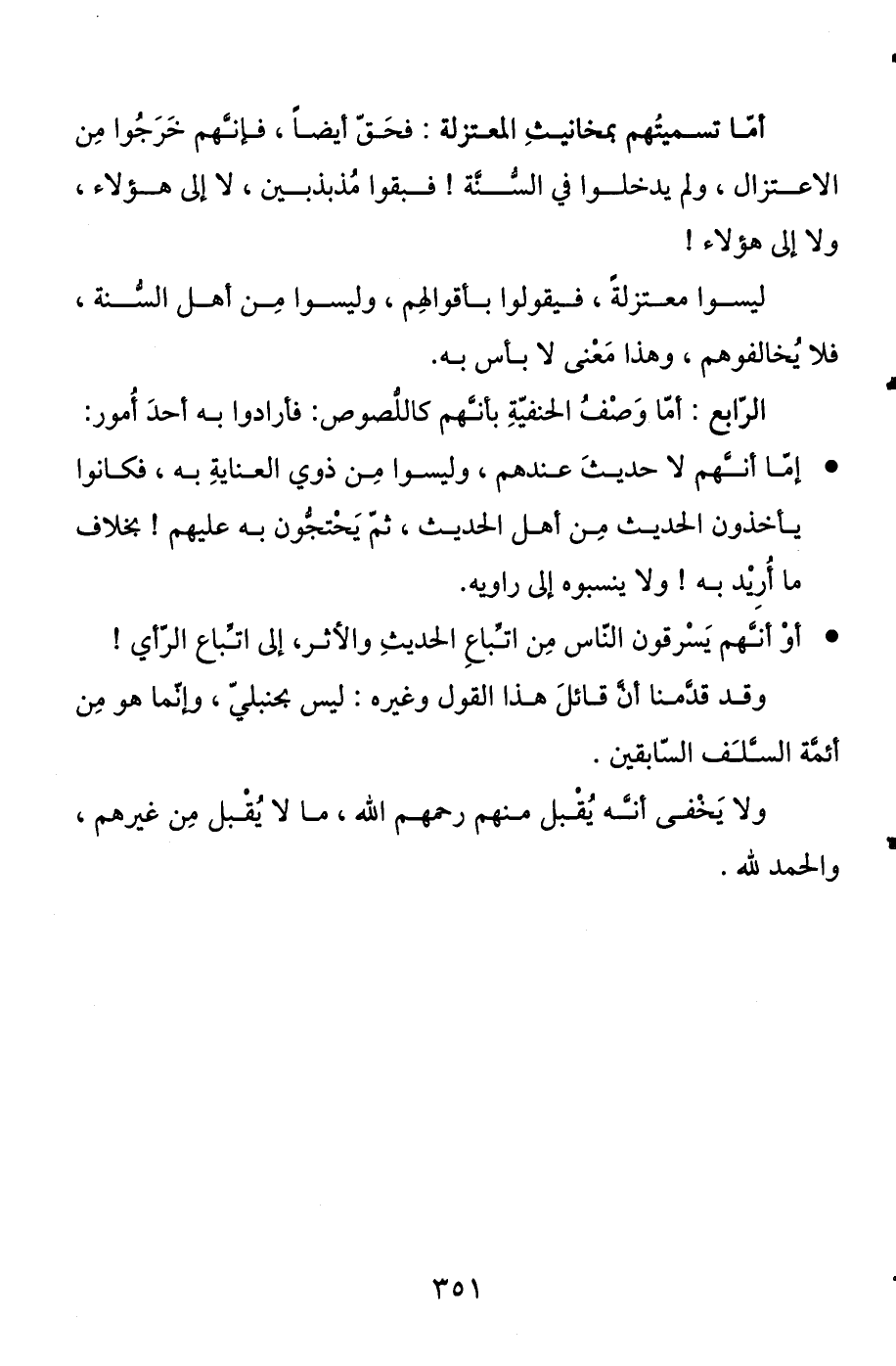 * أو أنهم يسرقون الناس من اتباع الحديث والأثر إلى اتباع الرأي، وقد قدمنا أن قائل هذا القول وغيره ليس بحنبلي، وإنما هو من أئمة السلف السابقين، ولا يخفى أنه يقبل منهم رحمهم الله ما لا يقبل من غيرهم، والحمد لله.
