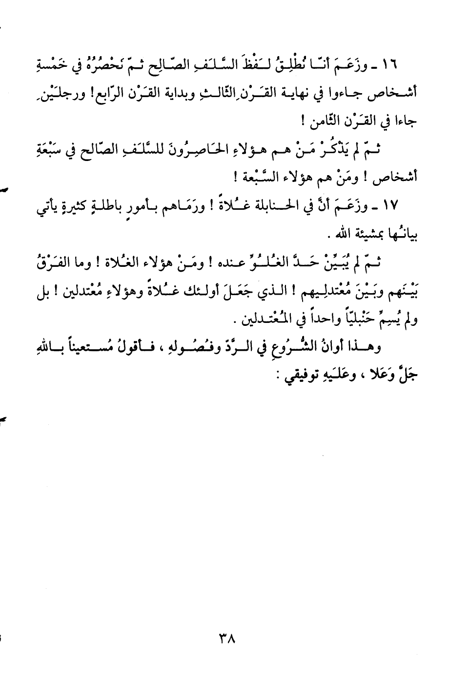 16 - وزعم أنا نطلق لفظ السلف الصالح ثم نحصره في خمسة أشخاص جاءوا في نهاية القرن الثالث وبداية القرن الرابع! ورجلين جاءا في القرن الثامن!
