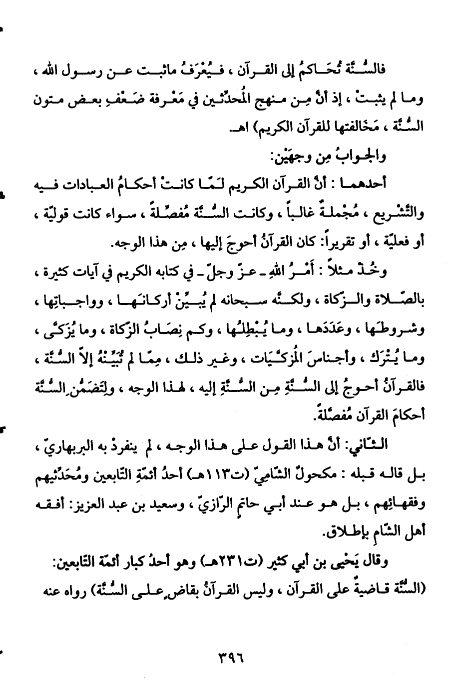 وقال يحيى بن أبي كثير (ت 231 هـ) وهو أحد كبار أئمة التابعين: (السنة قاضية على القرآن، وليس القرآن بقاض على السنة) رواه عنه