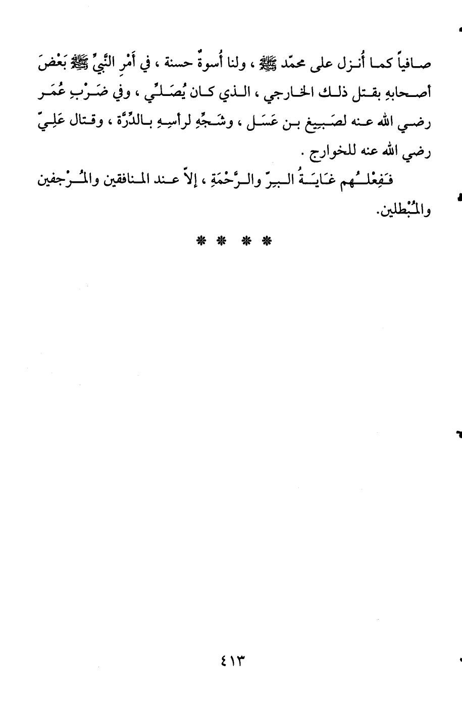 صافيا كما أنزل على محمد صلى الله عليه وسلم، ولنا أسوة حسنة في أمر النبي صلى الله عليه وسلم بعض أصحابه بقتل ذلك الخارجي الذي كان يصلي، وفي ضرب عمر رضي الله عنه لصبيغ بن عسل، وشجه لرأسه بالدرة، وقتال علي رضي الله عنه للخوارج، ففعلهم غاية البر والرحمة، إلا عند المنافقين والمرجفين والمبطلين.