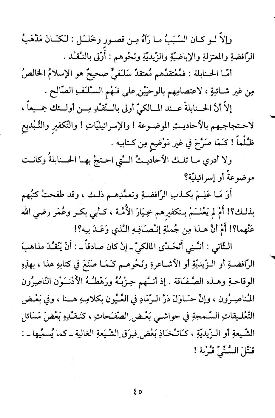 وإلا لو كان السبب ما رآه من قصور وخلل: لكان مذهب الرافضة والمعتزلة والإباضية والزيدية ونحوهم: أولى بالنقد.