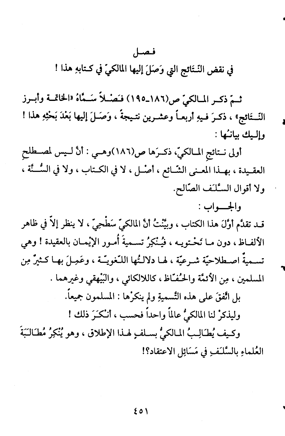 [فصل في نقض النتائج التي وصل إليها المالكي في كتابه هذا]