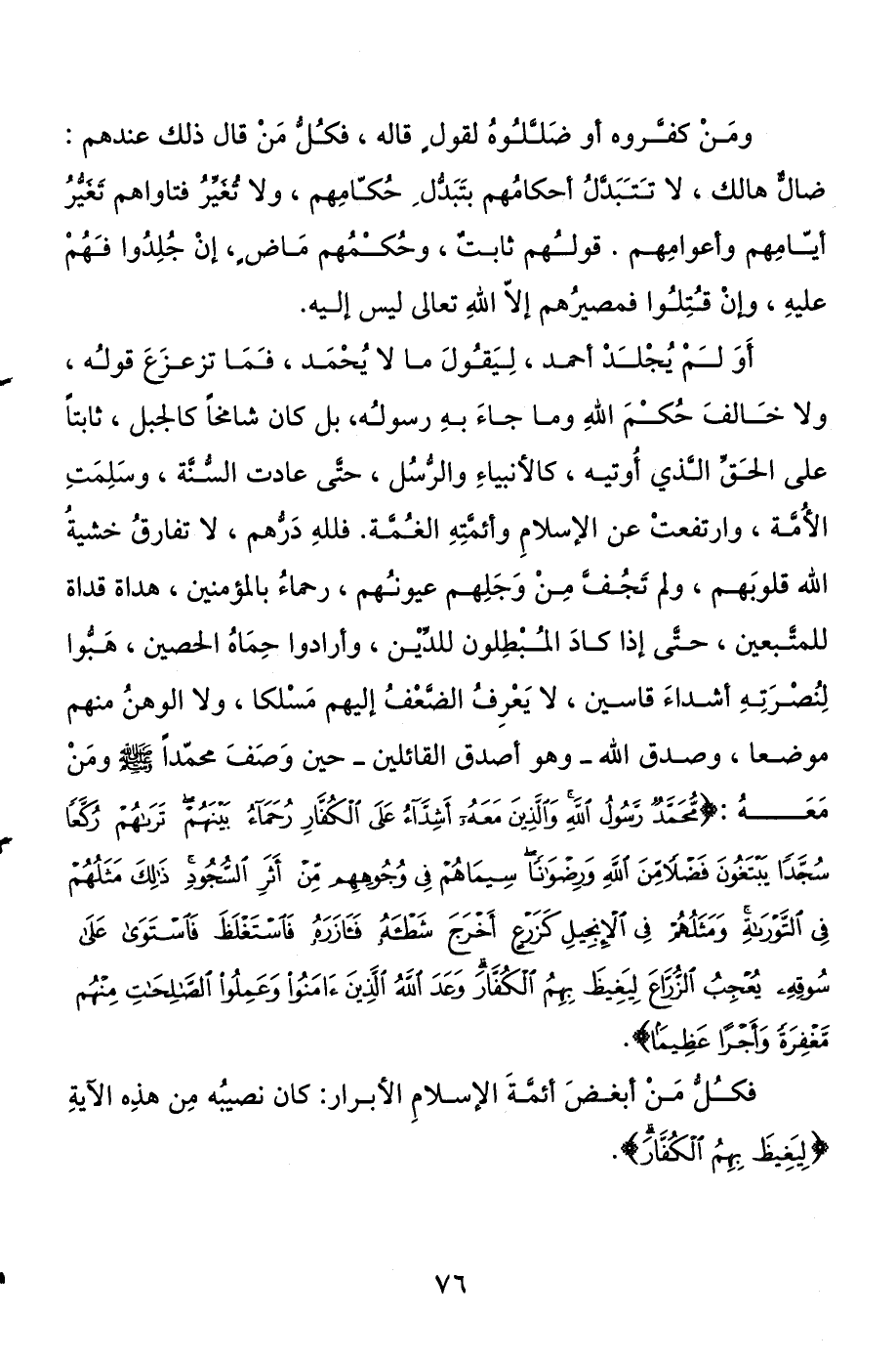 فكل من أبغض أئمة الإسلام الأبرار: كان نصيبه من هذه الآية {لِيَغِيظَ بِهِمُ الْكُفَّارَ} [الفتح: 29] .