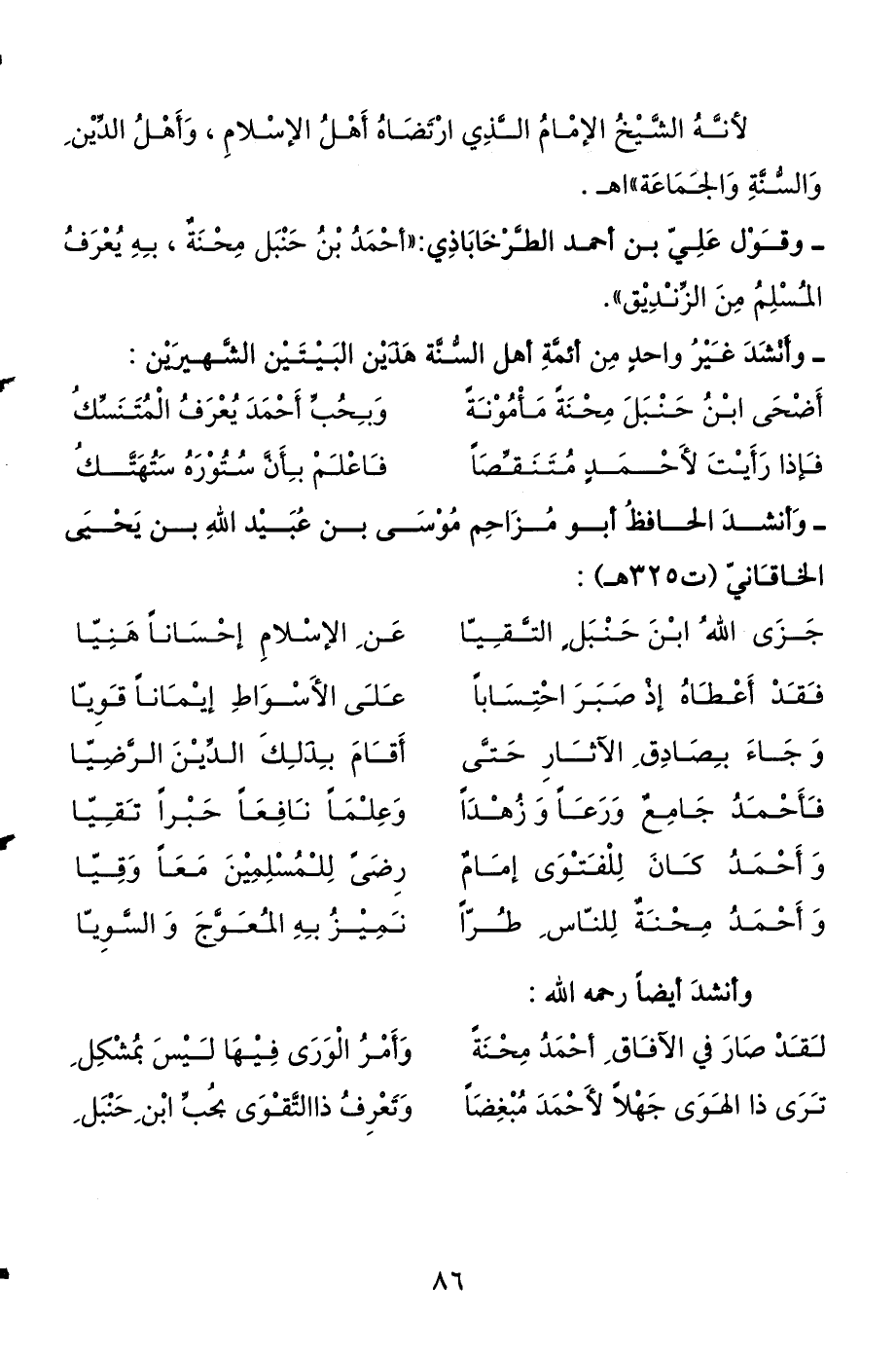 ترى ذا الهوى جهلا لأحمد مبغضا ... وتعرف ذا التقوى بحب ابن حنبل