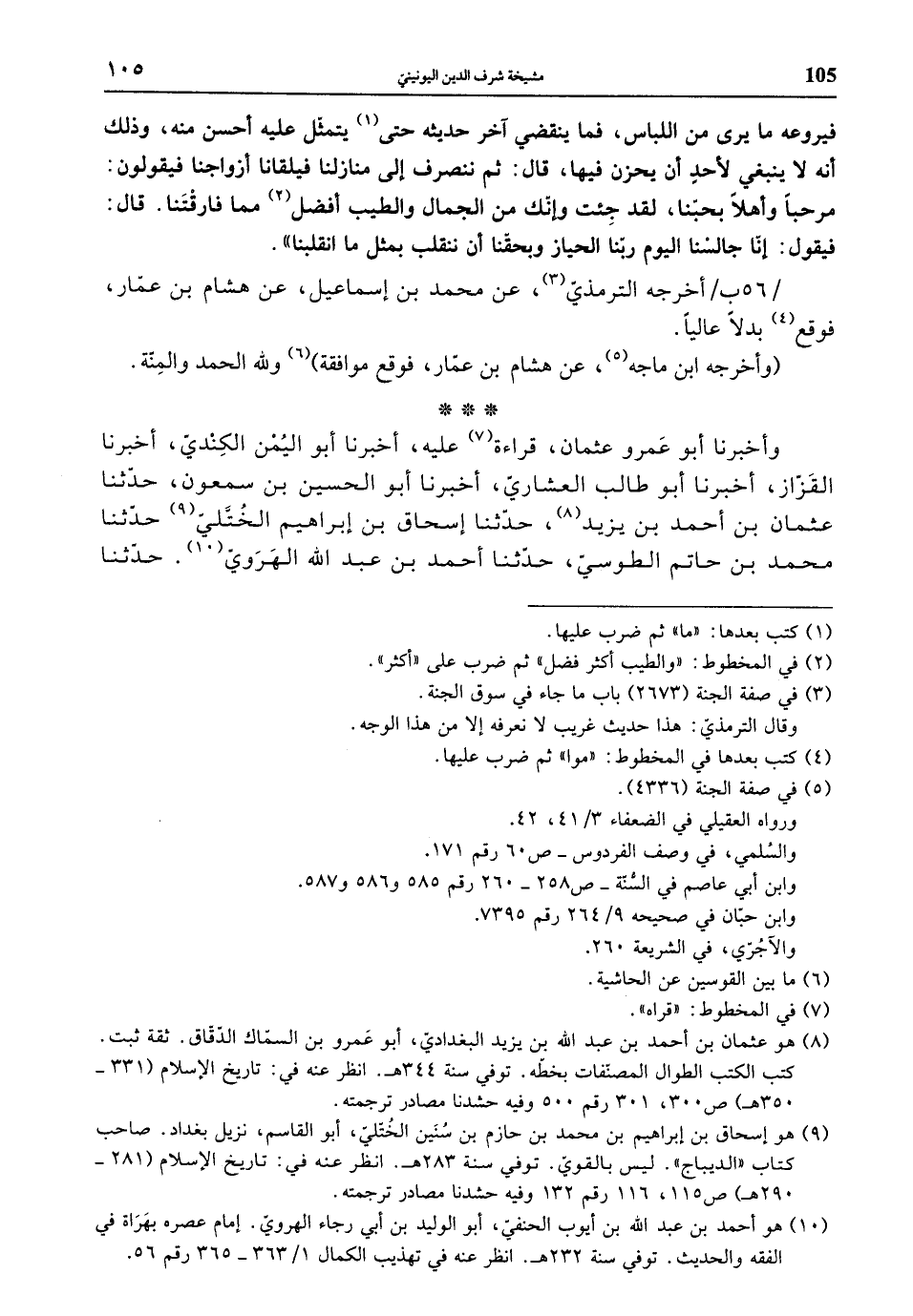 وأخبرنا أبو عمرو عثمان، قراءةً عليه، أخبرنا أبو اليمن الكندي، أخبرنا القزاز، أخبرنا أبو طالب العشاري، أخبرنا أبو الحسين بن سمعون، حدثنا عثمان بن أحمد بن يزيد، حدثنا إسحاق بن إبراهيم الختلي حدثنا محمد بن حاتم الطوسي، حدثنا أحمد بن عبد الله الهروي. حدثنا